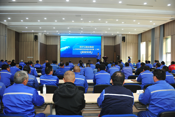 11月6日,2024年揚(yáng)子江船業(yè)集團(tuán)第二期班組長(zhǎng)特訓(xùn)營(yíng)結(jié)業(yè)匯報(bào)會(huì)在行政大樓多功能廳舉行。新?lián)P子造船副總經(jīng)理倪榮,新?lián)P子造船總經(jīng)理助理茆宏兆,揚(yáng)子鑫福造船總經(jīng)理助理劉銀君,各子公司生產(chǎn)、質(zhì)量、綜合管理?xiàng)l線的領(lǐng)導(dǎo)、班組長(zhǎng)導(dǎo)師及學(xué)員約90人參加。