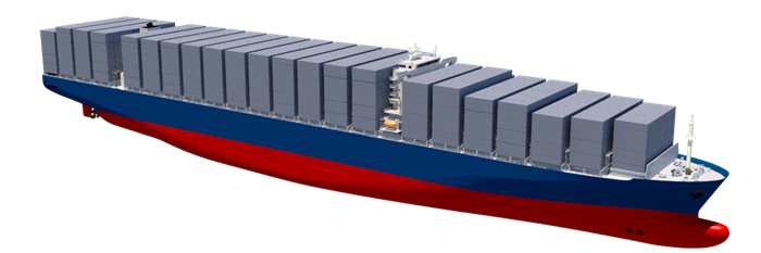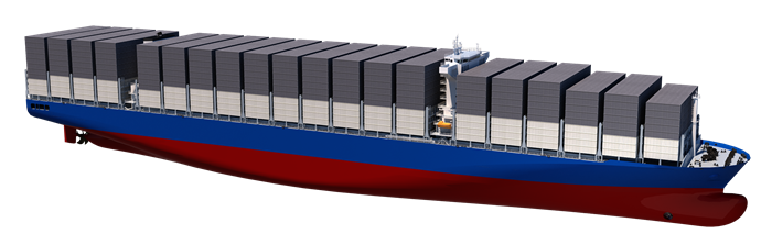 該11800TEU集裝箱船是新一代升級的節(jié)能環(huán)保集裝箱船,在原有成熟船型的基礎上優(yōu)化和改進了艏尾線型,主機油耗得到了較大的降幅,滿足EEDI最新的三階段指標。該船采用雙島設計,常規(guī)燃油推進方案,安裝混合式脫硫塔,可滿足各項硫排放限制要求。