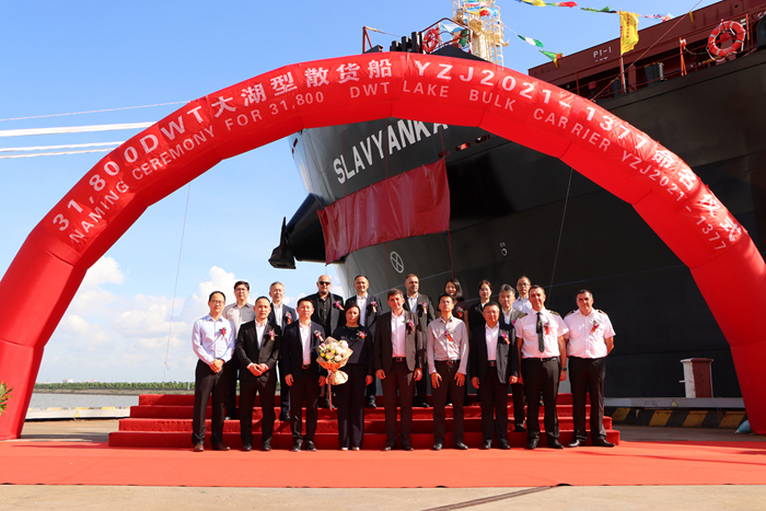On August 2, Yangzi Mitsui successfully named and delivered the second 31800DWT large lake bulk carrier "SLAVYANKA" (under the flag of Malta) built for the Bulgarian national shipping company NAVIBULGAR.