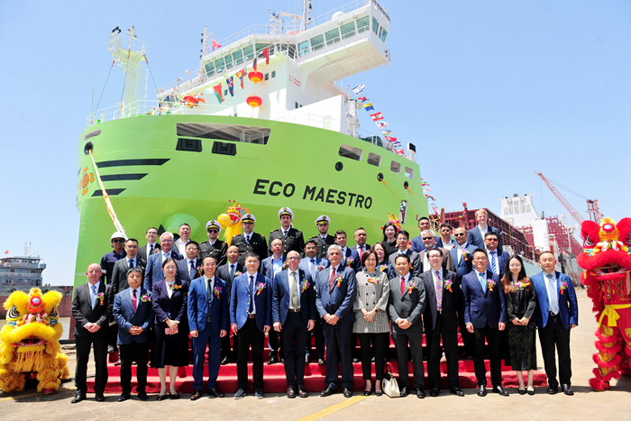 On May 16, our group and X-Press Feeders jointly held a grand delivery ceremony for the new vessel. At the ceremony, Mr. Shmuel Yoskovitz, CEO of X-Press Feeders, and Mr. Ren Letian, Chairman of our Group, delivered speeches on behalf of the shipowner and the shipyard respectively. Both parties reviewed the inception of their friendly cooperation, the breakthroughs achieved in their respective industries, and exchanged updates on the progress of ongoing projects. They expressed their hope to continue strengthening strategic docking, deepening exchanges and cooperation, leveraging their respective advantages and continuously improving the quality of cooperation on the basis of stabilizing the existing cooperative relationship.